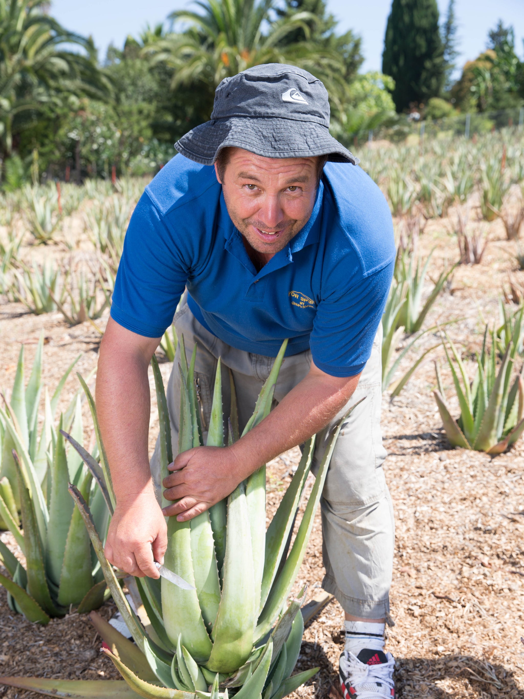 Auf dieser Finca wird noch alles per Hand gemacht. Von der Pflanzpflege bis zur Ernte – jede Geste ist bewusst, wertschätzend und nachhaltig. Nur reife, gesunde Blätter dürfen geerntet werden, um die Mutterpflanze zu schonen und ihre Kraft zu bewahren. So laden wir das volle Potenzial der Aloe Vera ein – für dich.